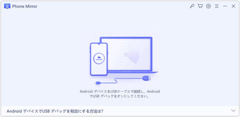 ② デバイスにPhoneMirrorアプリをダウンロードしてから、パソコンへのミラーリングを開始します。