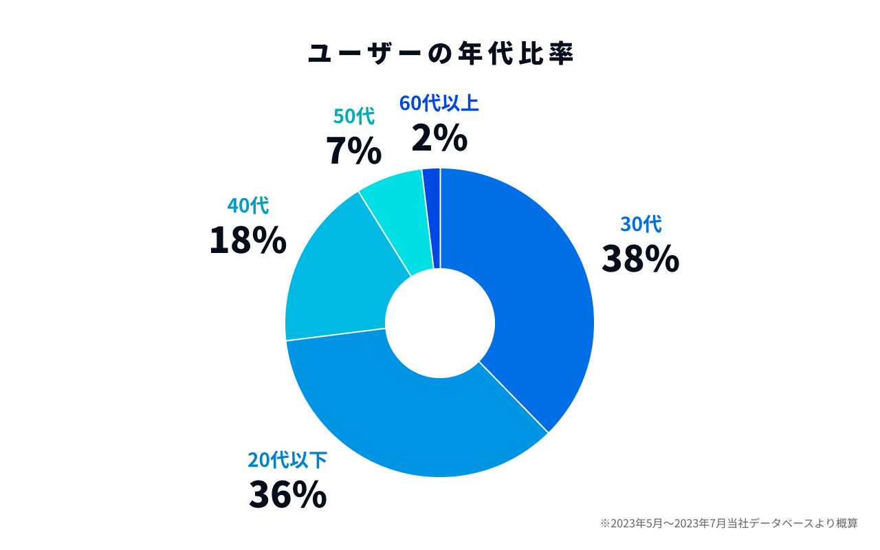 オカネコでもっとも多いユーザー層は30代。続いて、20代、40代が多く、「はたらく世代」の方をメインにご利用いただいております。