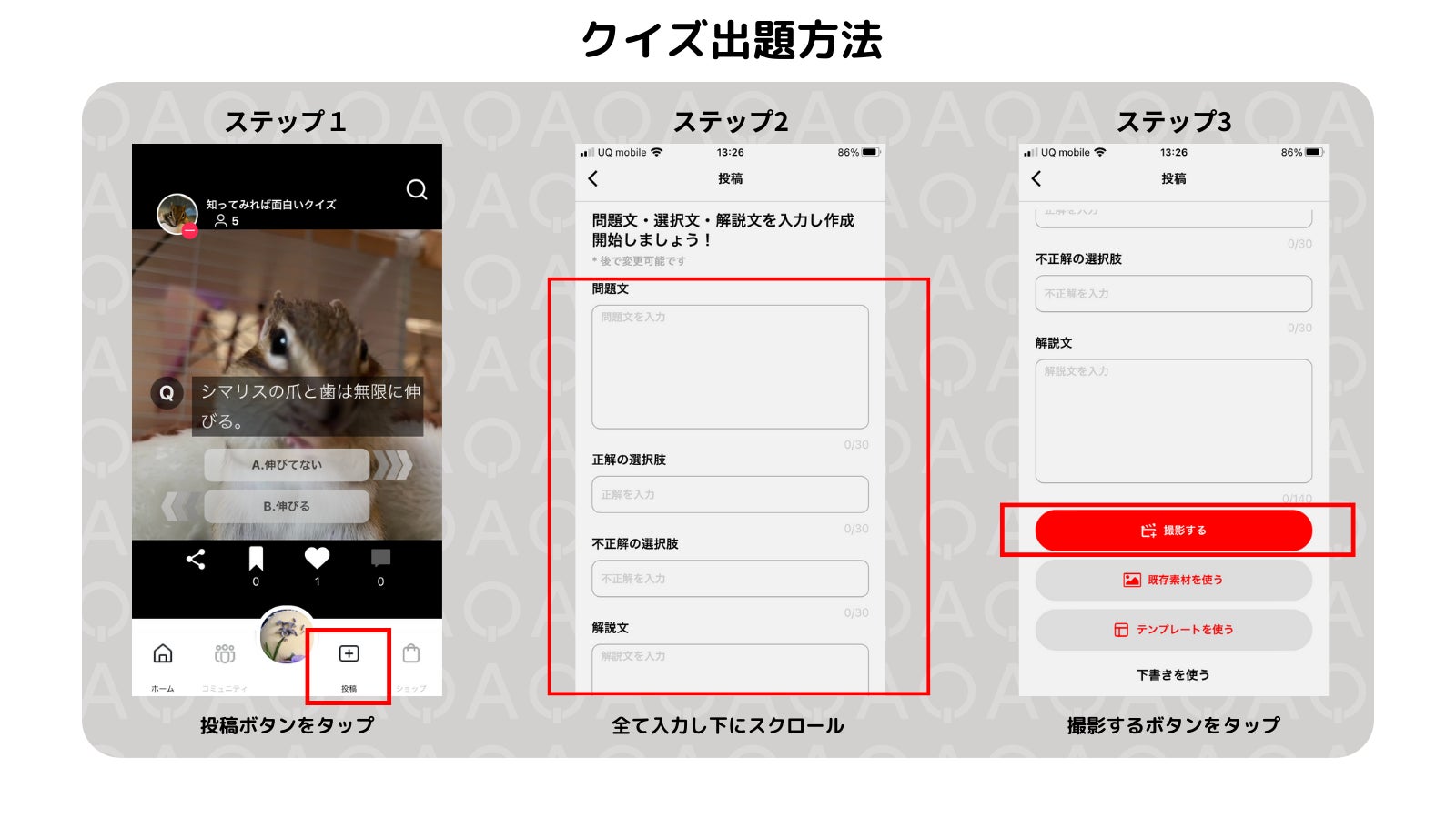 『QAQA(カカ)』は、クイズを出題したり、解答者として連続正解してゲーム内通貨「Chip」をため、たまった「Chip」を暗号資産「BLQS」に交換することができる、ユーザー投稿型の縦型ショート動画クイズアプリです。