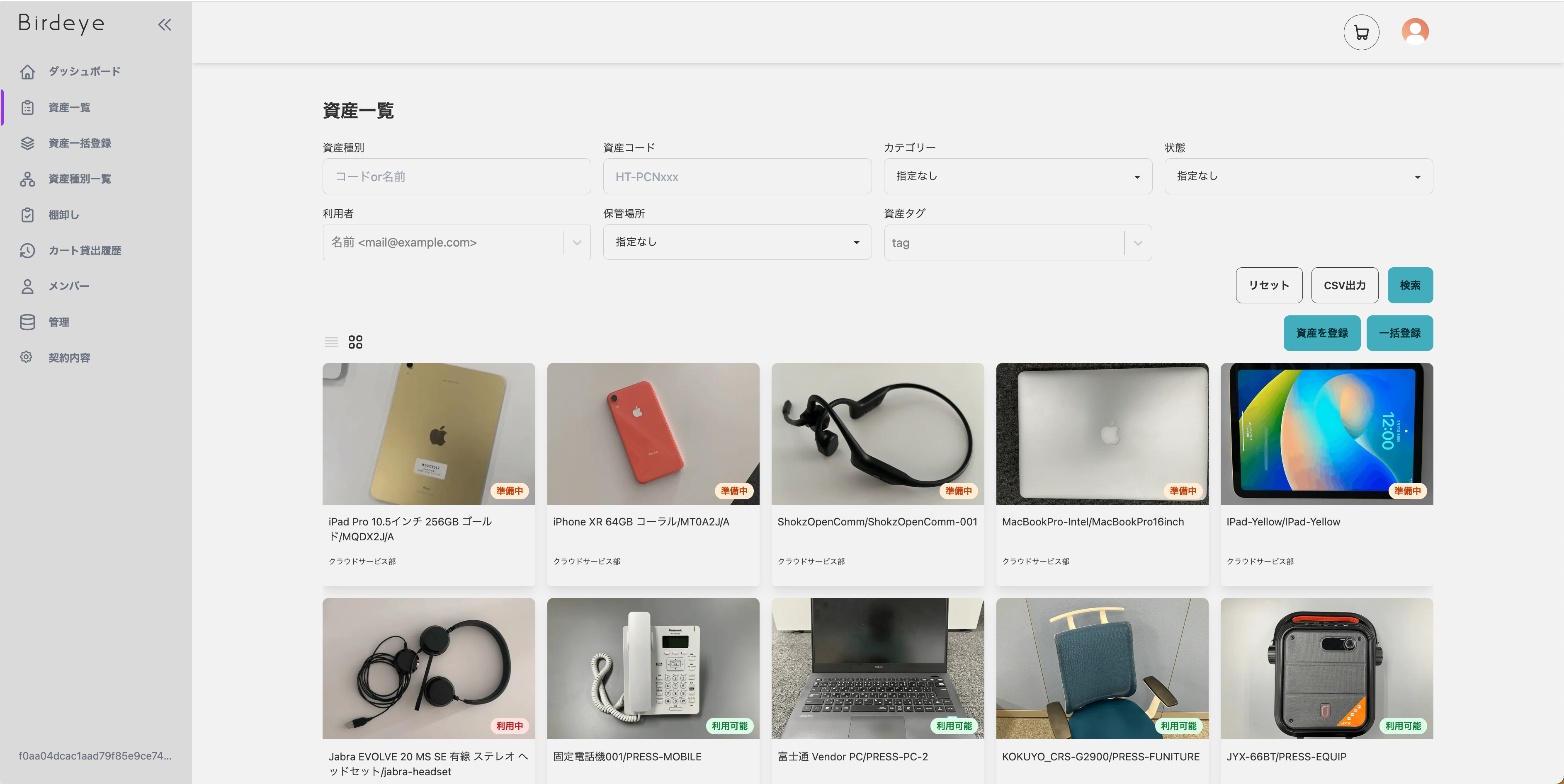 「Birdeye」は、有形・無形の両方の資産をまとめて管理することができるほか、資産の貸出や棚卸業務を効率的に行うためのサポート機能も実装しています。