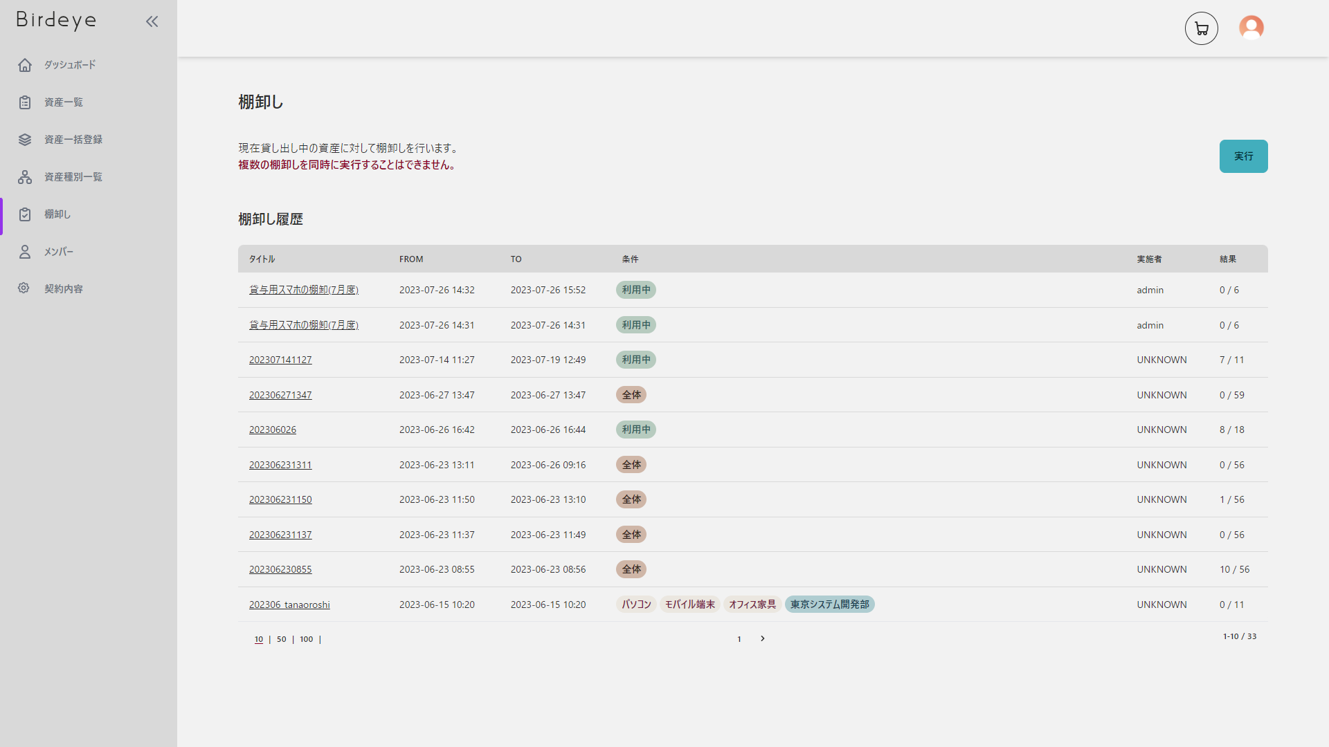 資産台帳 資産(土地や建物からIT資産に至るまでの様々な資産)を一覧表示するだけではなくタグで分類することができるほか、資産の利用状況も判別できます。