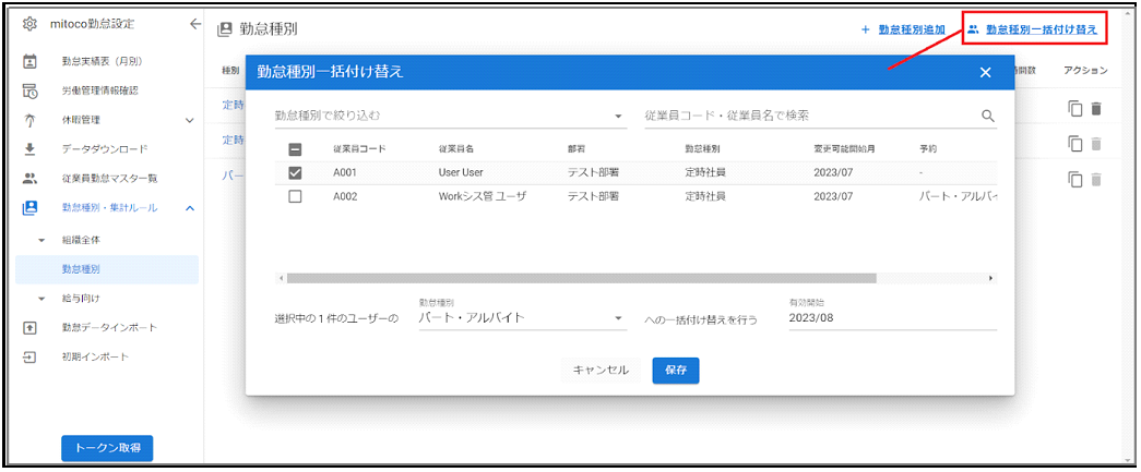 従業員の勤怠種別を一括で付け替えられるようになりました。