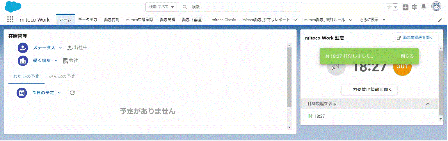 打刻、休暇関連情報が、在席管理コンポーネントにシームレスに連携されるようになりました。