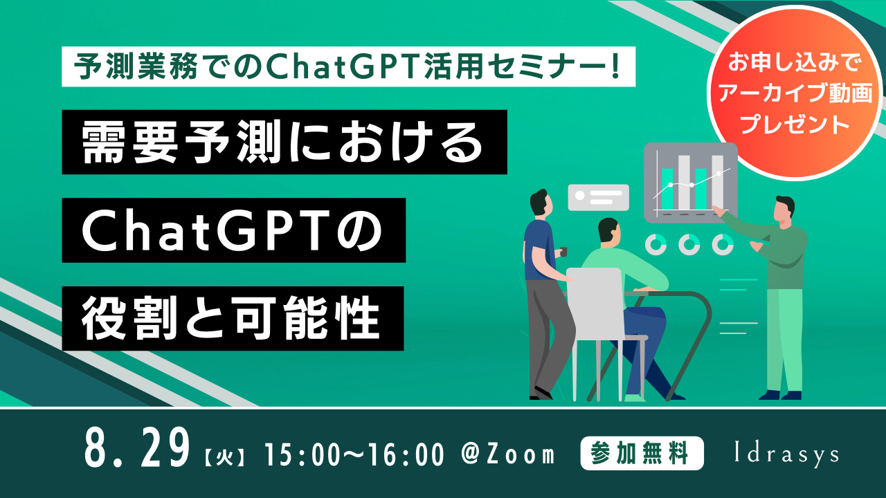 株式会社クリーク・アンド・リバー社(C&R社)のAI・クラウドサービス事業を行うグループ会社である株式会社Idrasys(以下Idrasys)は、8月29日(火)、無料ウェビナー「【予測業務でのChatGPT活用セミナー!需要予測におけるChatGPTの役割と可能性】」を開催いたします。