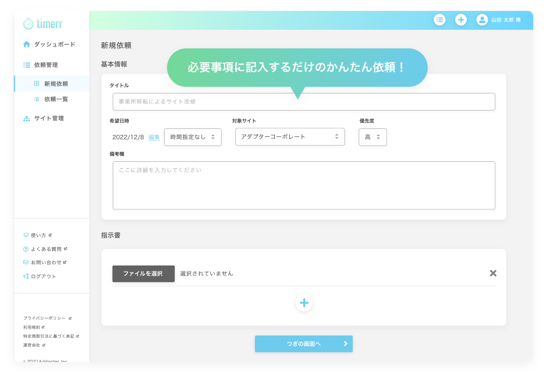必要事項を入力して頂くだけの簡単操作で、すぐに担当者に依頼できます。
