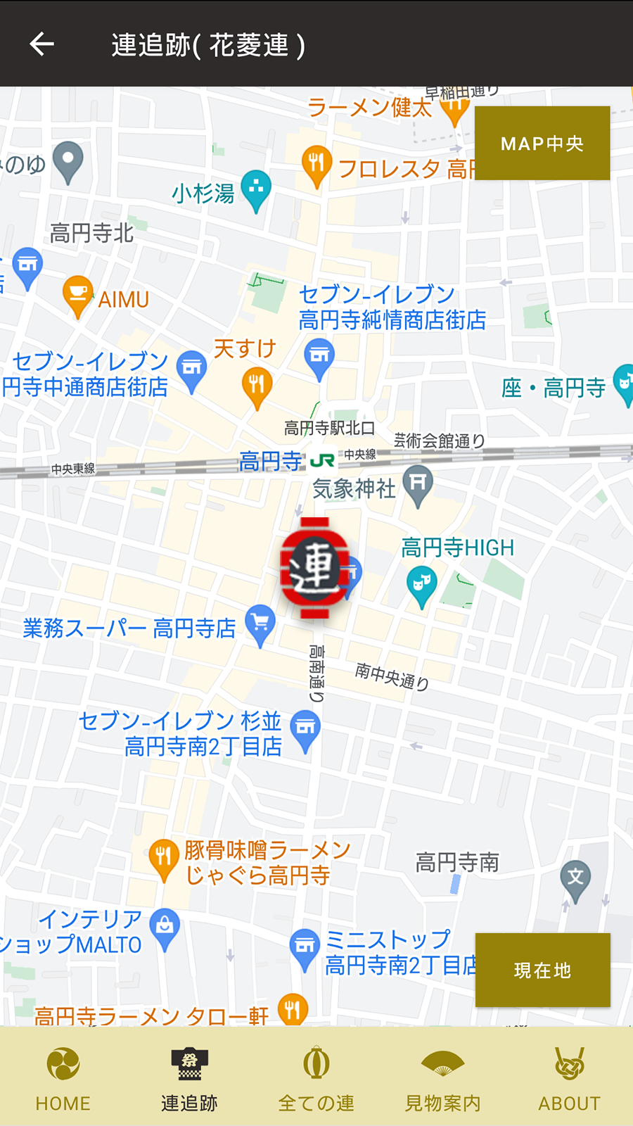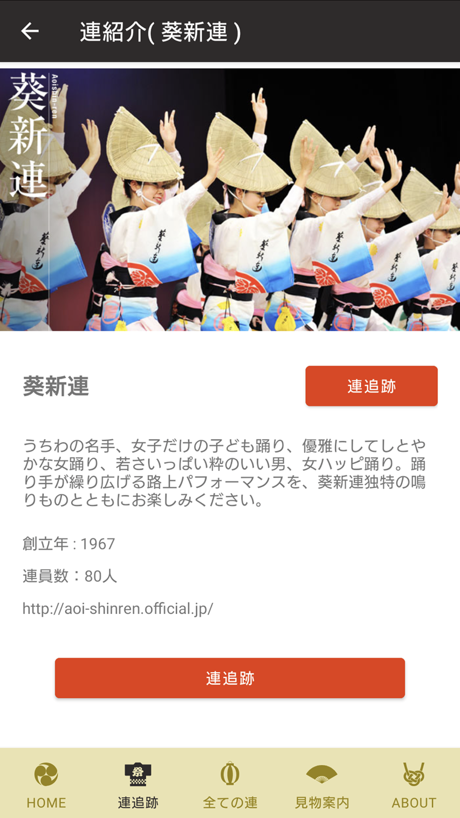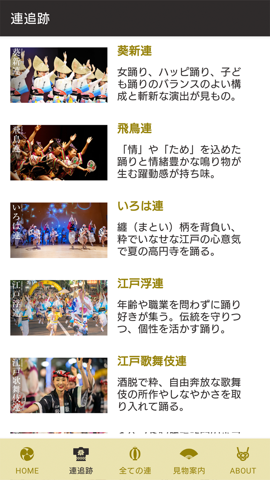 このアプリでは「高円寺阿波おどり連協会」に所属する30連を追跡できます。