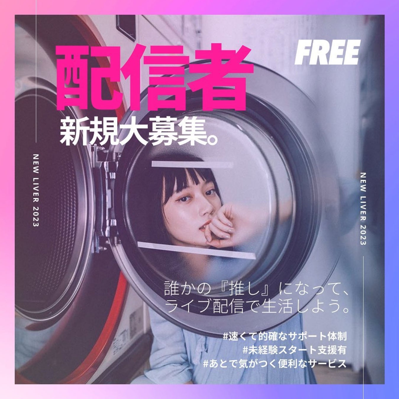 FREE【フリー】は、ポコチャ専門のライバー事務所で、そのサポート内容が業界を驚かせています。0円0%で全国対応し、ライバーが自由に創造的な活動を展開できるよう、前例のないサービスを提供。