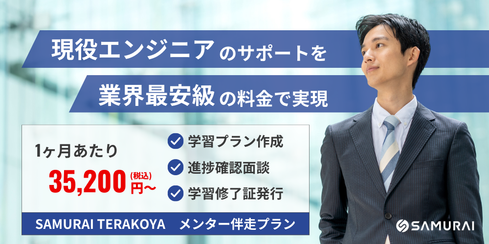 侍テラコヤ(TERAKOYA)の「メンター伴走プラン」では、従来のプランでは対応していなかった、現役エンジニアによる様々なサポートを受けることが可能になりました。