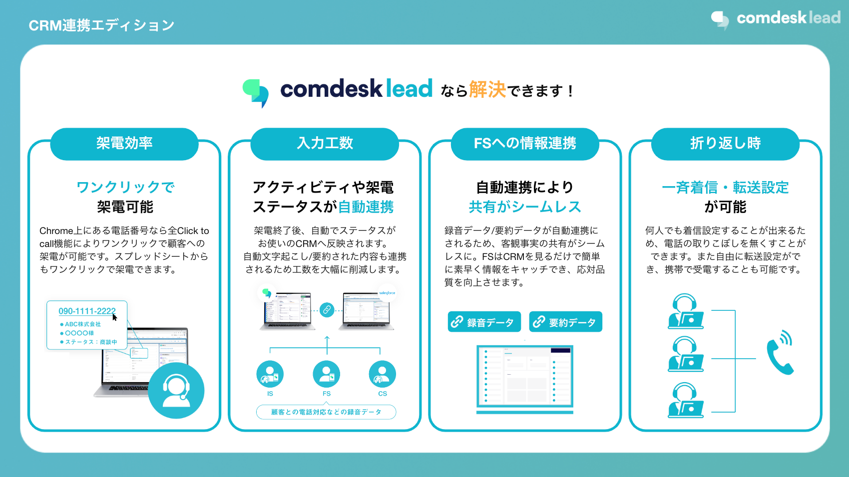 Comdesk Lead CRM連携エディションページ:https://comdesk.com/crm