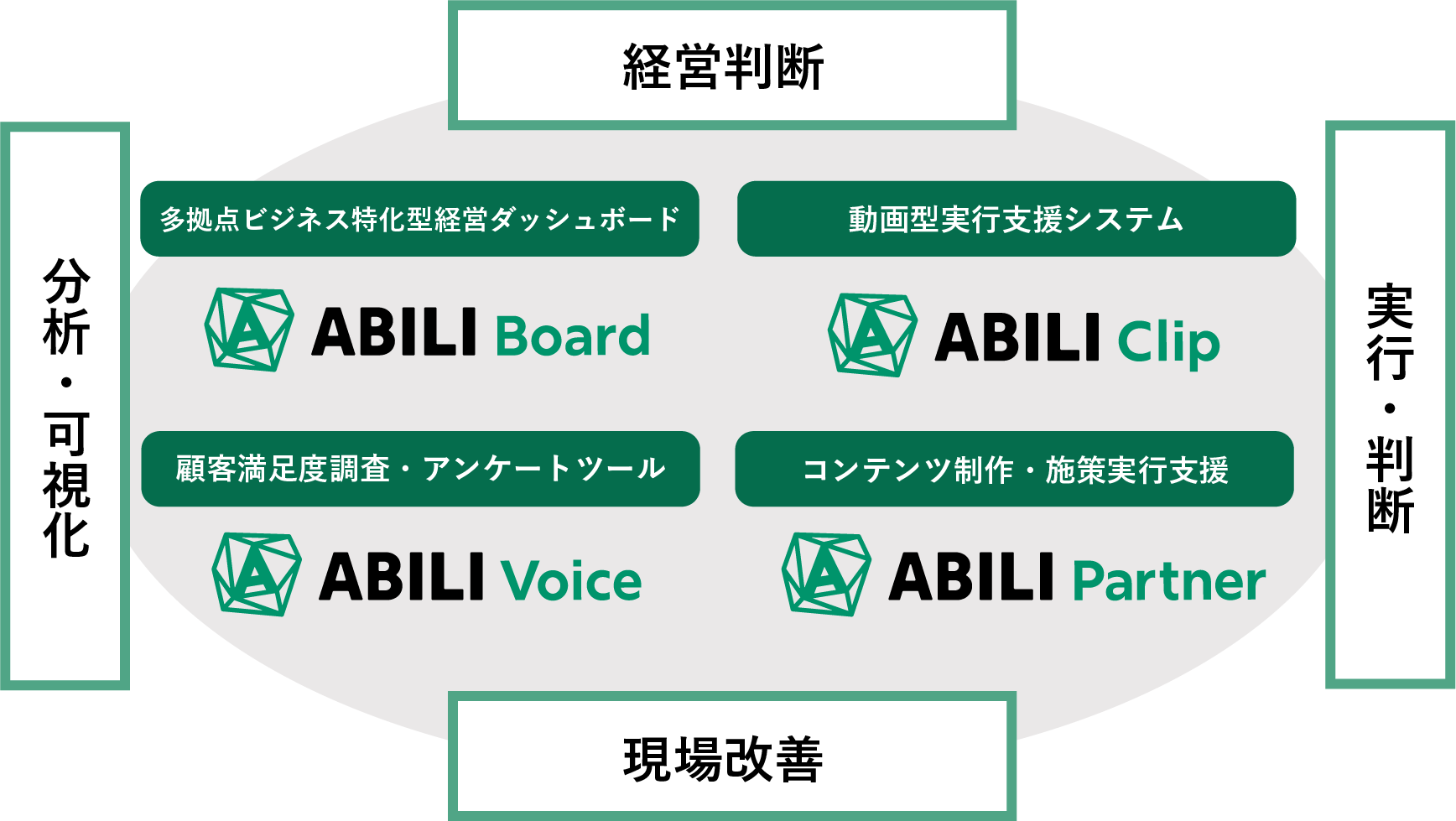 そのような状況において、多拠点ビジネスが顧客に選ばれ続ける高品質なサービス提供と、これまで以上の利益獲得を両輪で実現していく支援のためには、ClipLineのサポート範囲を大幅に拡大し、顧客の課題に徹底的に寄り添った総合的なプラットフォームの提供が不可欠であるという結論のもと、「ABILI」のリリースに至りました。