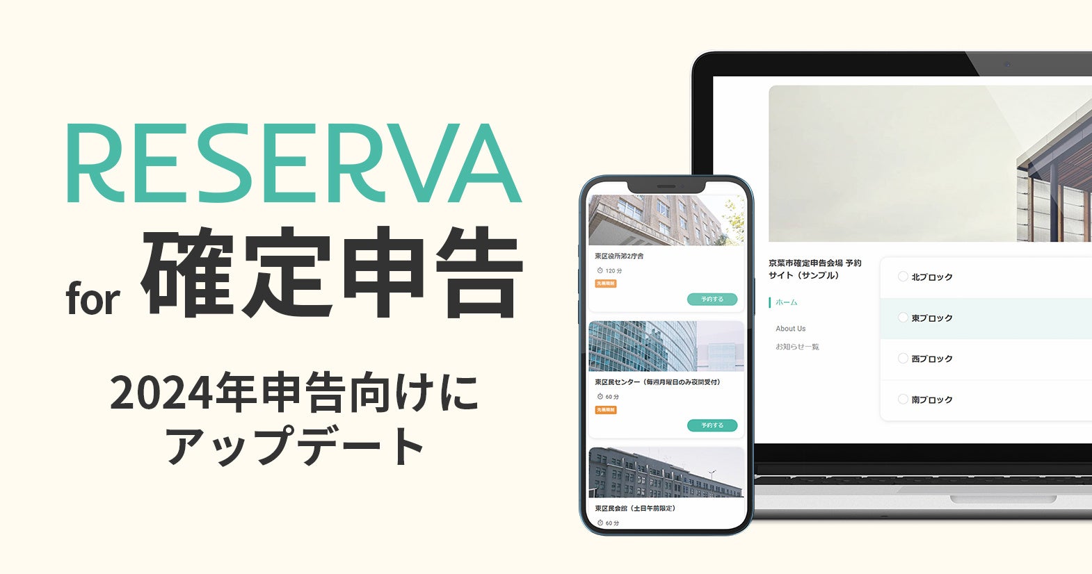 令和6年(2024年)に提出となる令和5年分(2023年分)の確定申告は、2024年2月16日から3月15日までの予定です。当社は2021年より、確定申告会場向けの予約管理システム「RESERVA for 確定申告」を提供しており、2024年版のリリースに伴い機能アップデートを実施しました。最新バージョンの特徴は以下のとおりです。