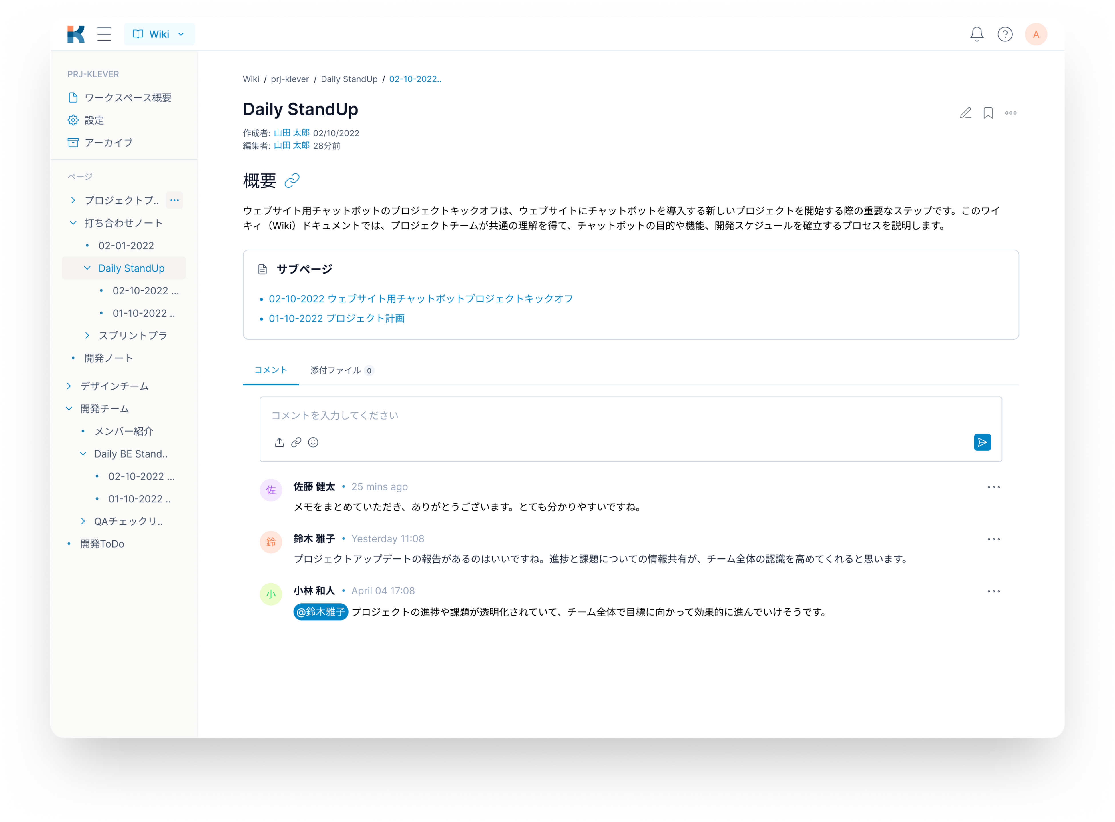 Klever Wikiでドキュメントを作成し、チームとリアルタイムで共同編集できる