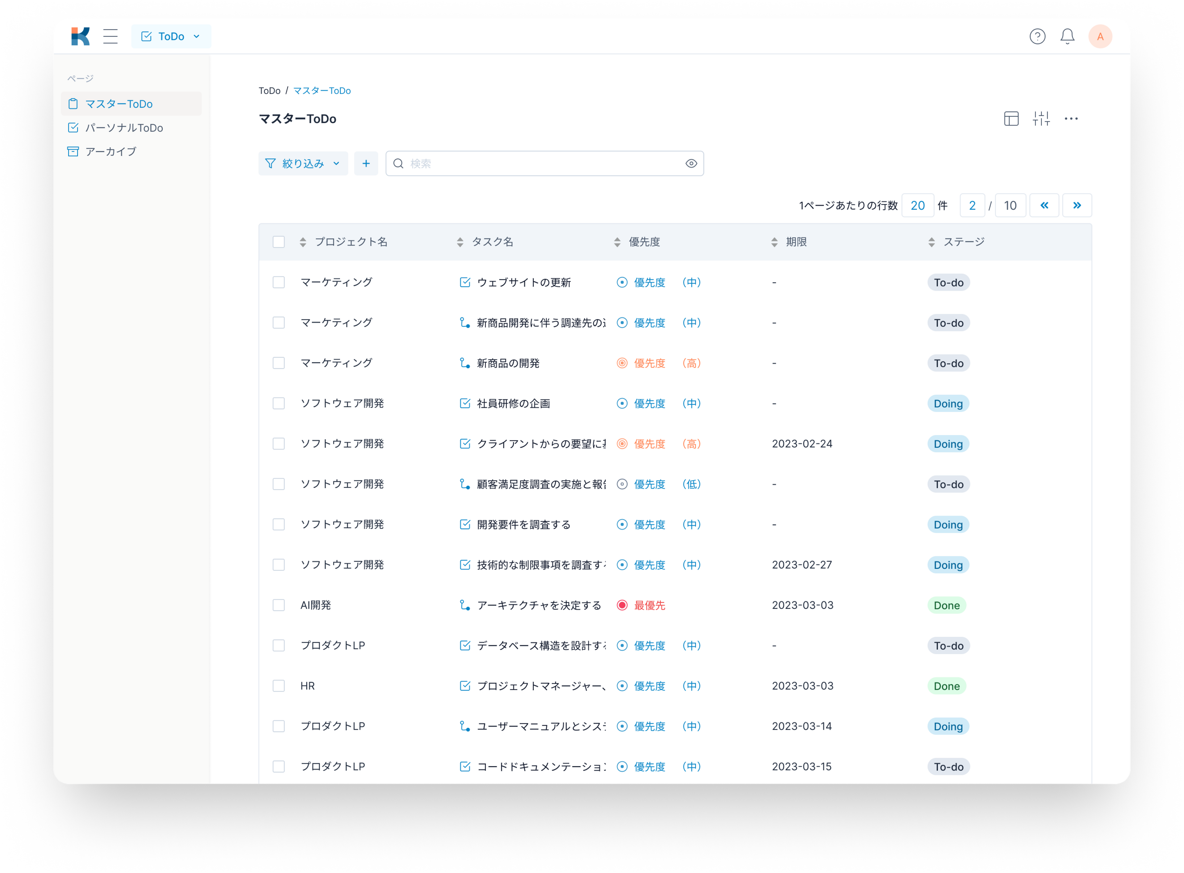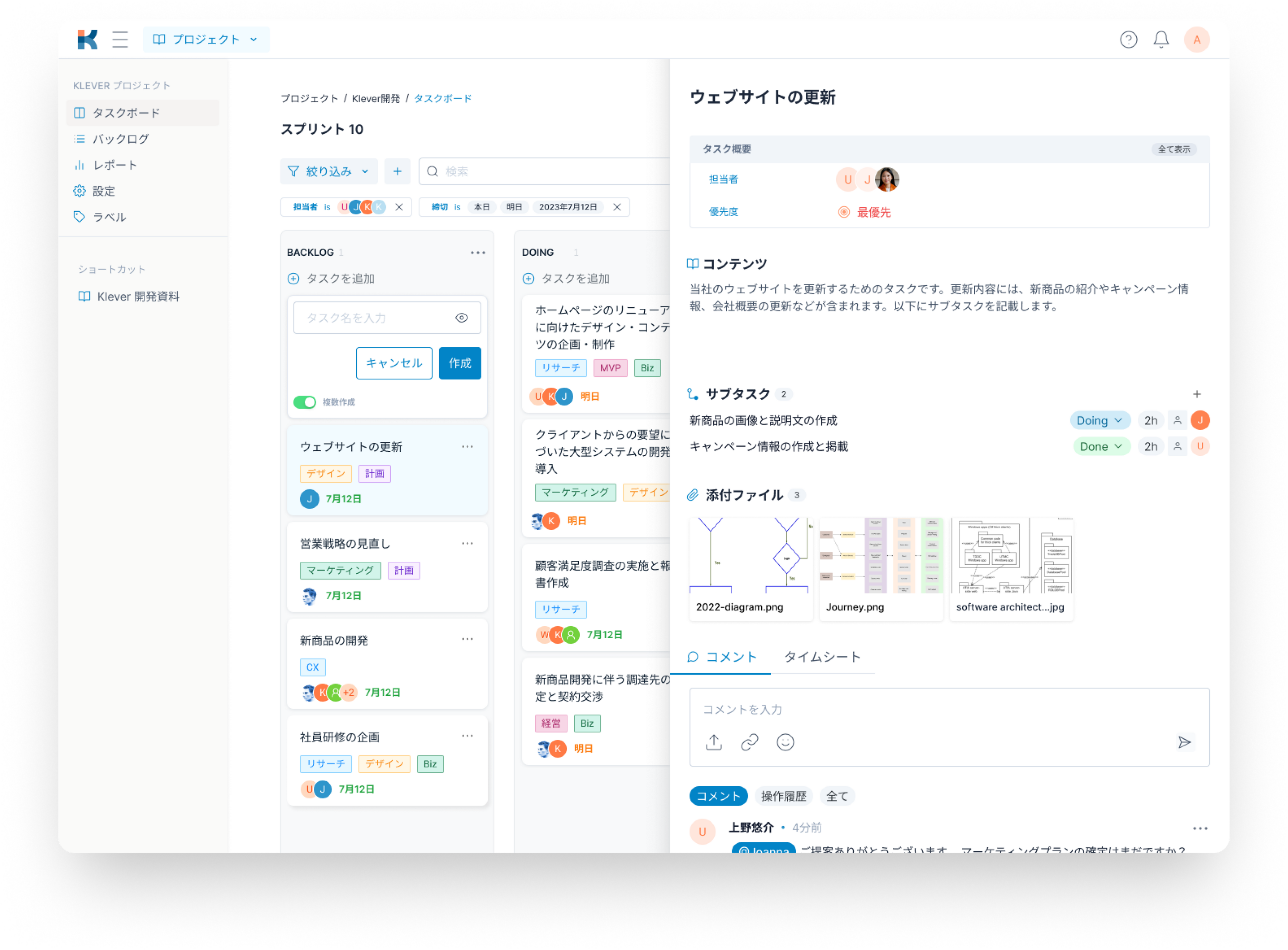 Klever ToDoで作業中の全てのタスクを一覧表示、重要なアクションアイテムに集中