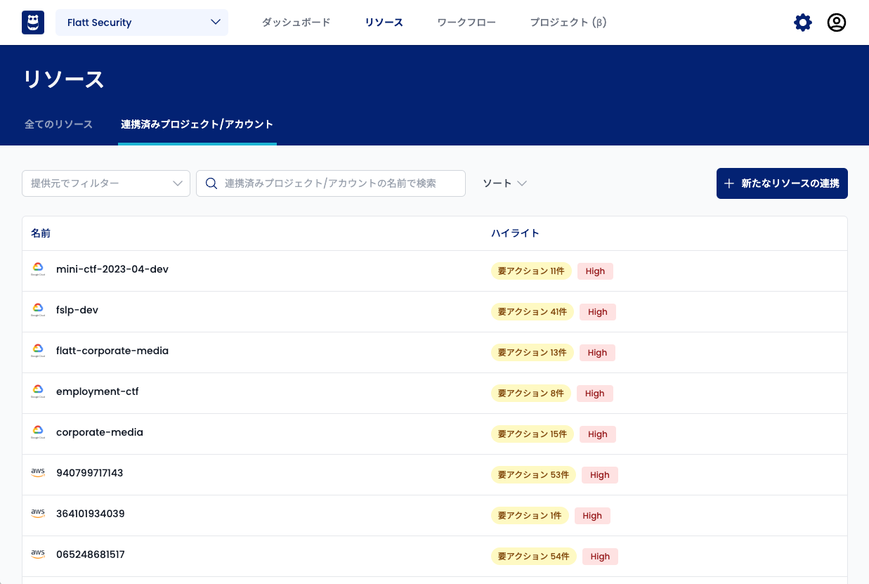AWS・Google Cloudのリスクを自動的・継続的に検査します。検出されたリスクはリアルタイムで通知されます。