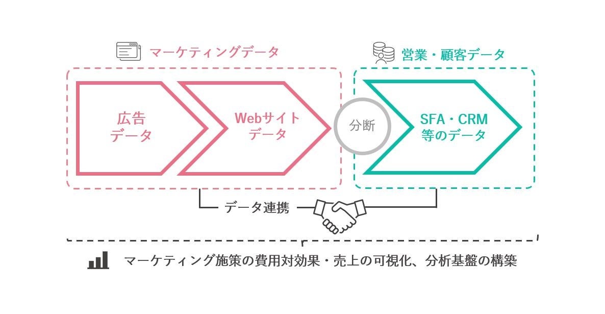 特にBtoBのデジタルマーケティングにおいては、営業・顧客データとの連携が本質的なマーケティング活動を行っていくためには必要不可欠となります。