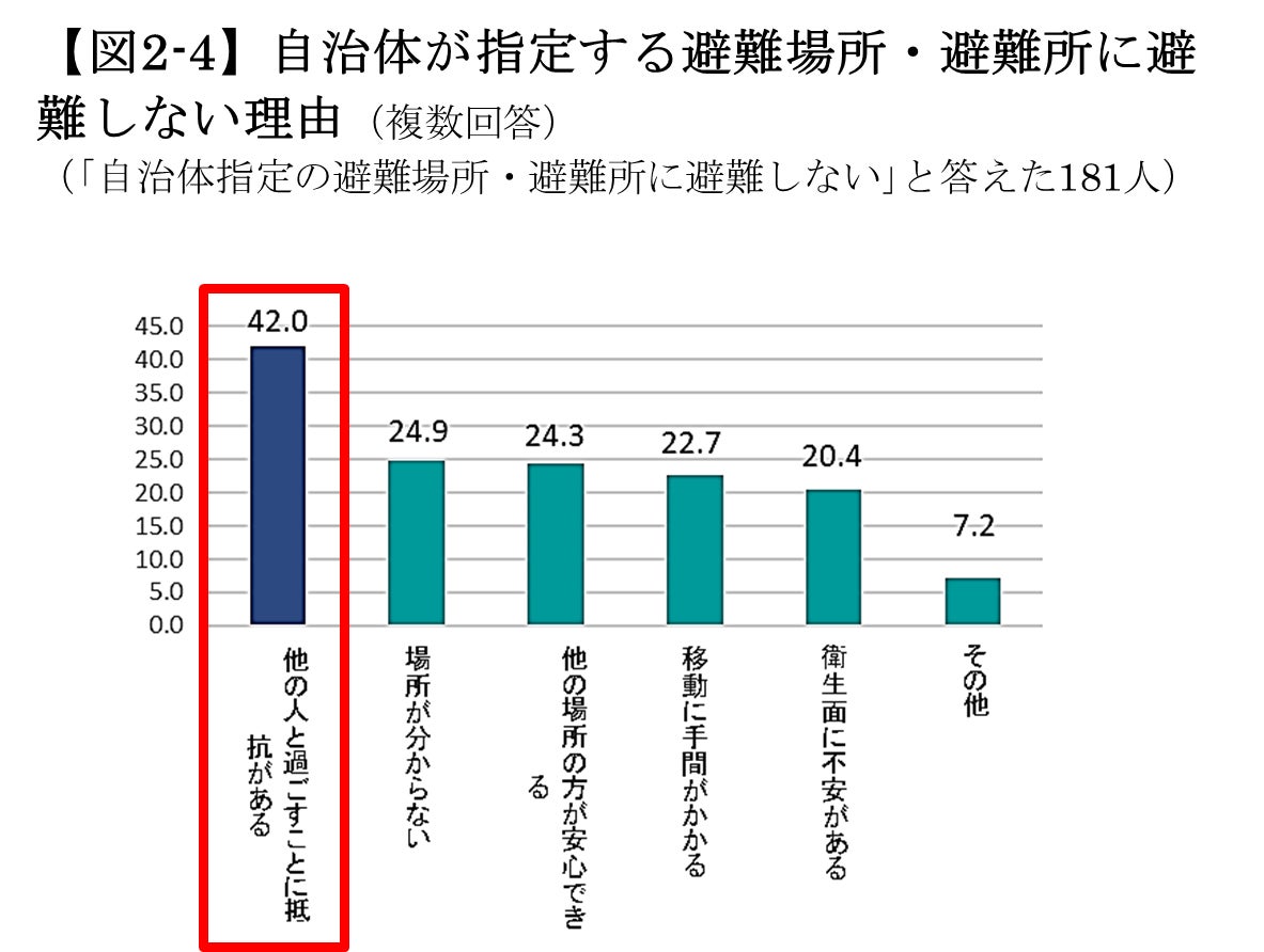 ■自治体指定の避難場所・避難所に避難しない理由の1位は「他の人と過ごすことに抵抗がある」