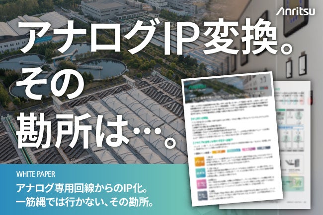 アンリツ株式会社(社長 濱田 宏一)は、IPコンバータを用いて既存のアナログ通信設備をそのまま利用し、IP回線に接続する際、留意すべき課題や解決策をまとめたホワイトペーパーを公開しました。