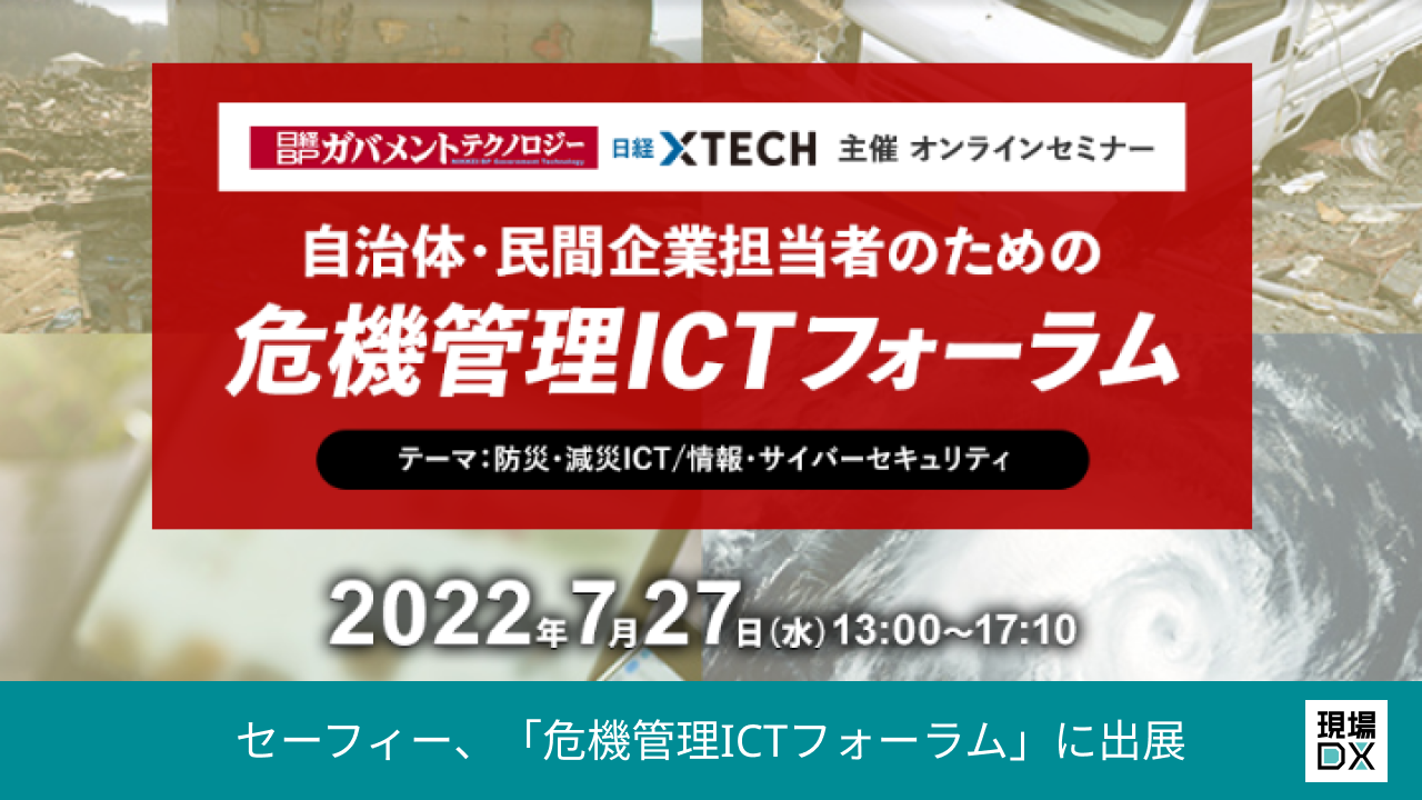 「危機管理ICTフォーラム」は、民間企業の危機管理・防災担当者やICTと危機管理・防災の連携を考えている自治体や企業担当者を対象としたオンラインセミナーです。自治体・企業が考えるICTの役割や防災テックの活用方法について紹介し、担当者がICTの力を活用することで危機を乗り越えられるよう支援いたします。