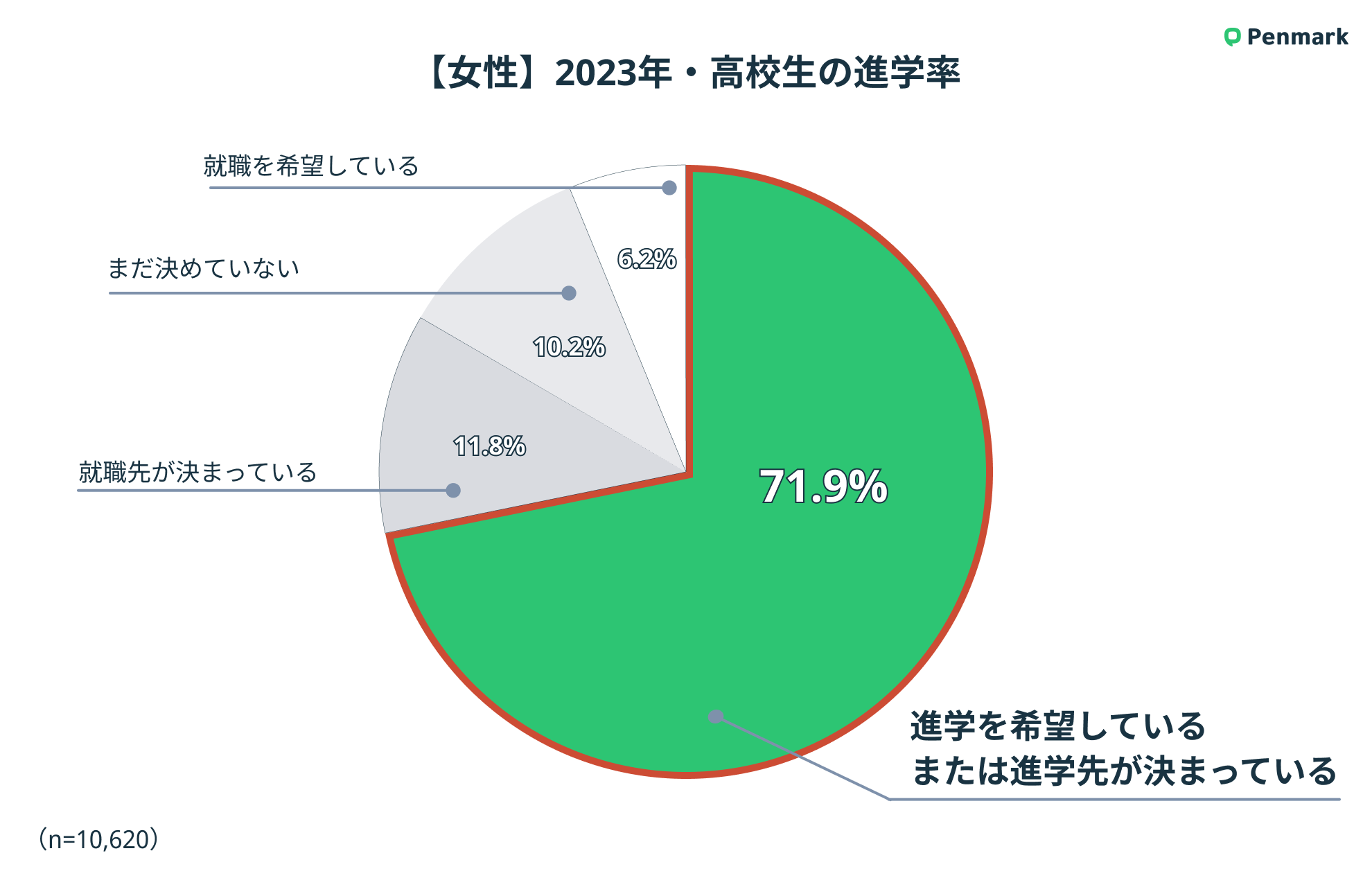 男女別では、男性の進学希望率は71.4%、女性の進学希望率は、71.9%となり、男女差はほとんど見られなかった。