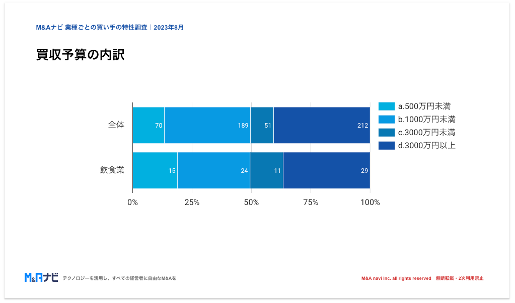 そのため、統計的に母集団の特性を示すものでは必ずしもなく、他のM&Aプラットフォームサービスの特性を説明するものでもないことを、あらかじめご了承ください。