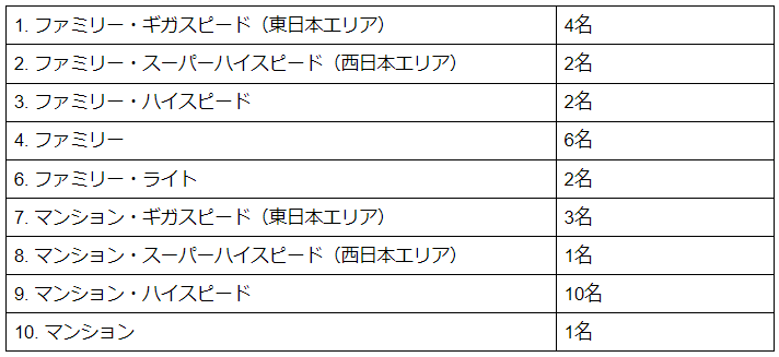 戸建のプランで最も選ばれているのは「ファミリー」、マンションやアパートのプランで最も選ばれていたのは「マンション・ハイスピード」でした。