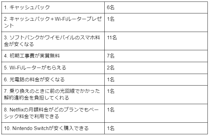 ④ソフトバンク光(光回線)を申し込むとき、どのようなキャンペーンに惹かれましたか?