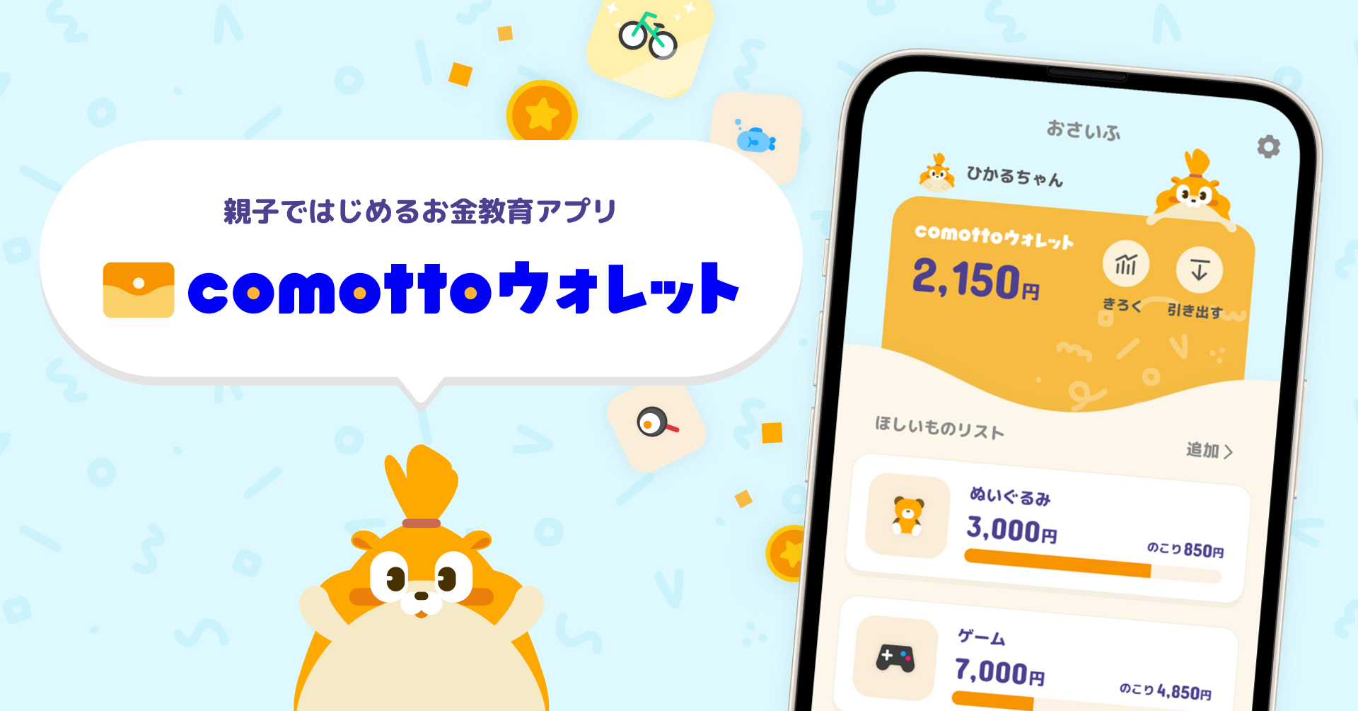 comottoウォレットは「かせぐ、ためる、つかう」の体験を通してお金について親子で学ぶことができるお金教育アプリです。