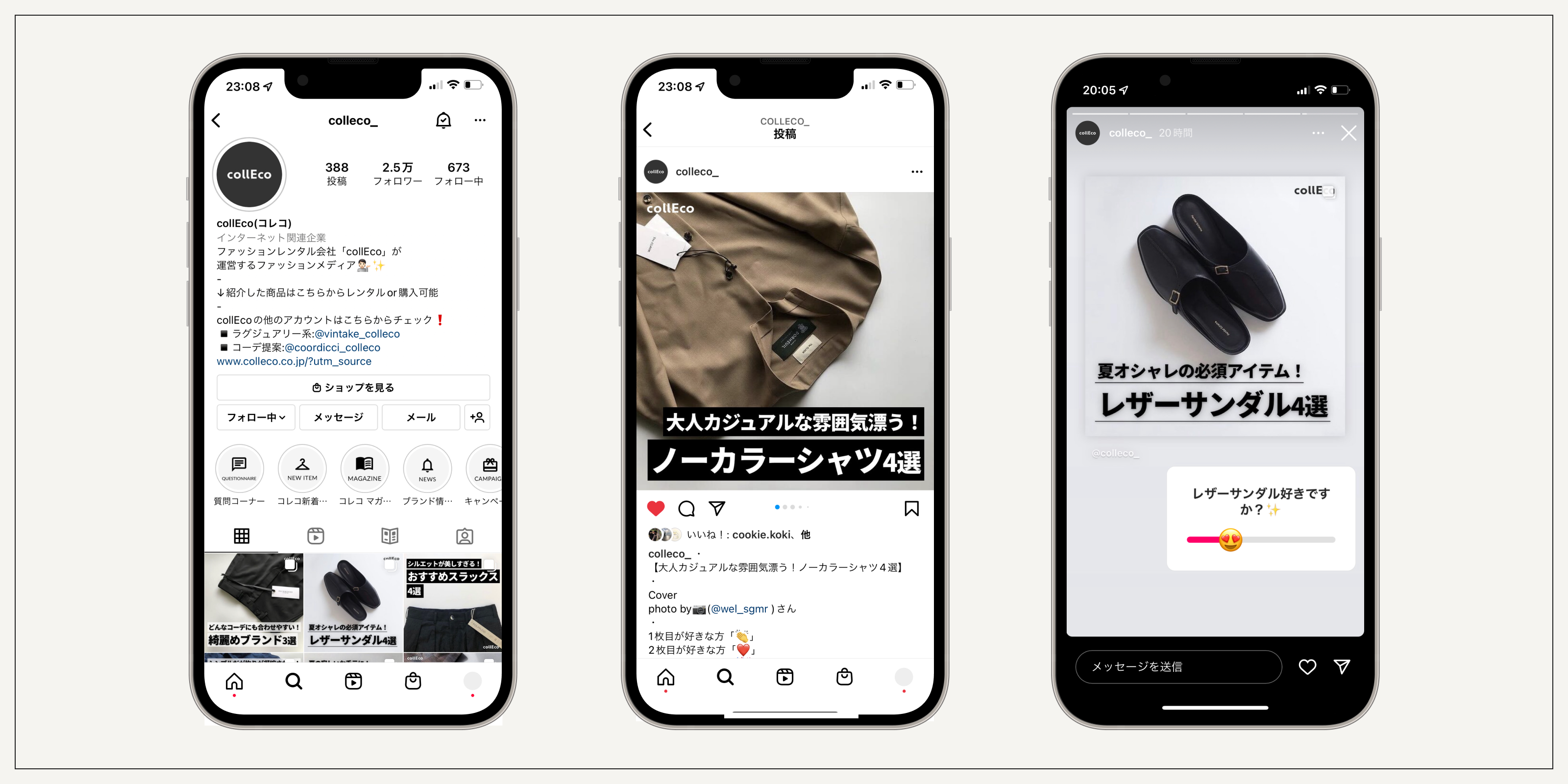 SNS事業であるファッションメディア「collEco(コレコ)」では、国内・海外のデザイナーズブランドのおすすめ商品・最新情報をInstagramにて日々発信しております。メディア内で紹介した商品をレンタルすることも可能です。