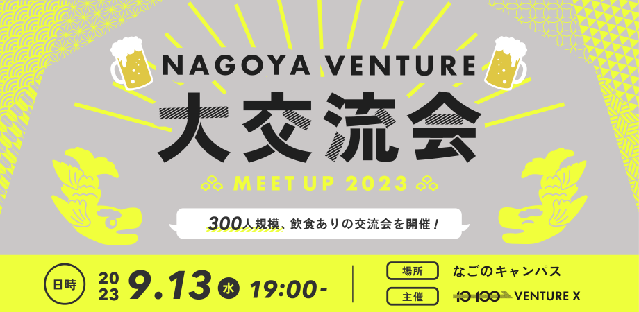 本イベントは、当社と株式会社スタメン( 本社:愛知県名古屋市、代表取締役:⼤⻄ 泰平)が主催する様々なベンチャー・スタートアップ各社を巻き込み、互いに刺激や学びを与え合いながら、1年間を通して、それぞれの取り巻く環境をより盛り上げていくプロジェクト「10⇨100 VENTURE X」の第2弾イベントとして実施いたします。
