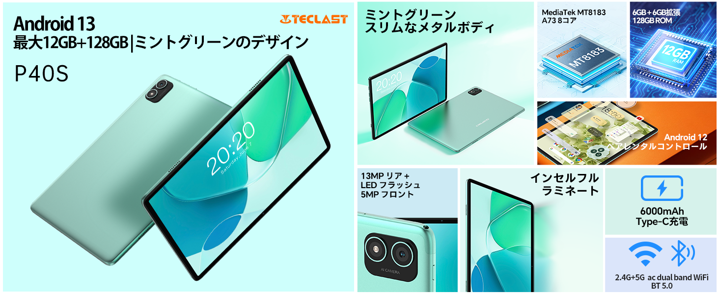 「T40S」は新しいAndroid 12インテリジェントオペレーティングシステムは、新しいユーザーインターフェースデザインにより使いやすい操作体験を提供します。また、デスクトップからアプリを起動することができ、より優れた権限管理が可能で、ペアレンタルモードも搭載されています。「T40S」は2.4G+5GデュアルバンドWi-Fi、Bluetooth 5.0に加え、GPS、GLONASS、Galileoにも対応し、より正確なナビゲーションを提供します。