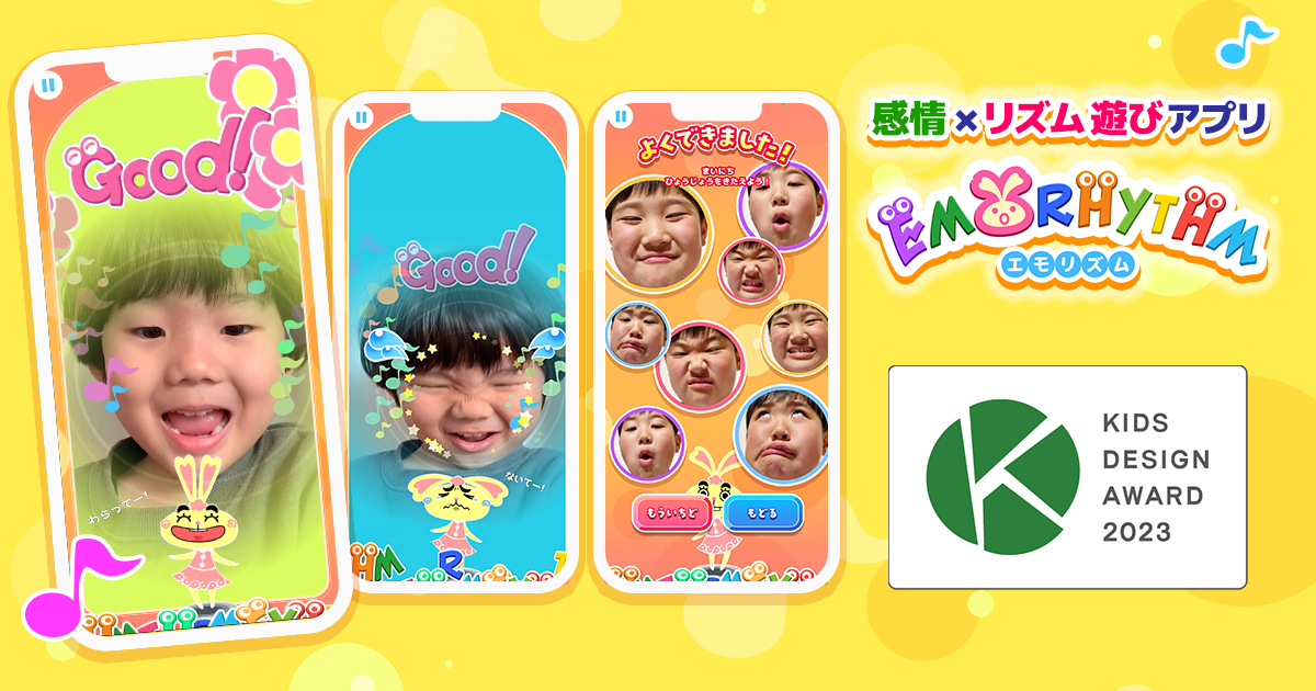 「エモリズム」のヒントになったのは、ある時、開発メンバーの一人が子どもたちとお風呂に入っていたときのこと。鏡に向かって、「泣いて!」「笑って!」と表情を作り合って遊ぶ様子を見て、「表情」だって、子どもにとっては遊び道具の一つなんだ!そんなふうに感じたことが開発のきっかけでした。