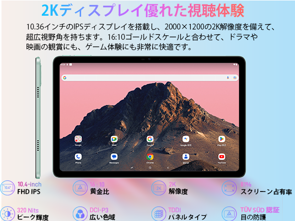 10.4インチのフルラミネートIPSディスプレイで比類のないビジュアルをお楽しみください。2000×1200の2K解像度と178°の超広視野角を誇るT20は、妥協しない視界を提供します。320nitsの輝度により、これまで以上に鮮やかでリアルな視聴体験を得ることができます。