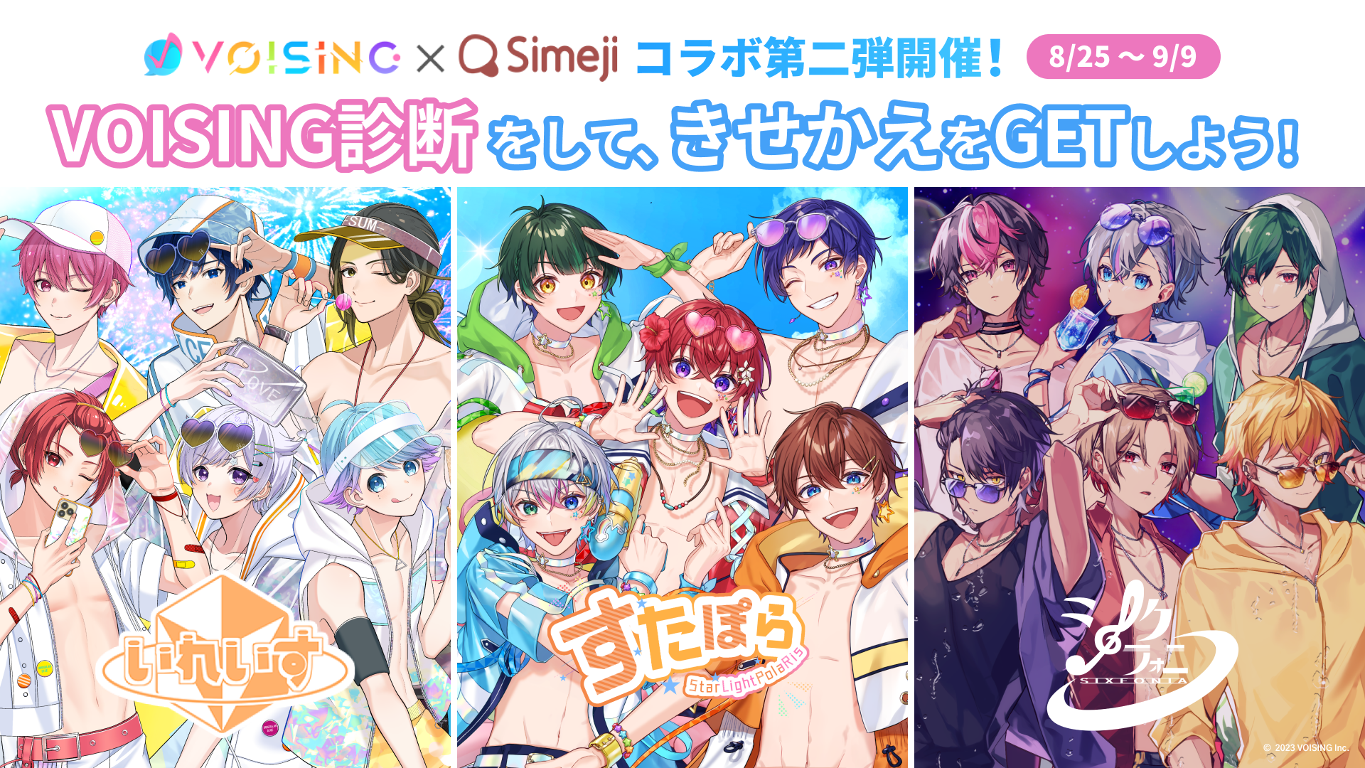 あなたがVOISINGの歌い手になるなら、どんな人?グループを選んで自分の名前を入力するだけで、自分がVOISINGの歌い手になったら…を教えてくれる「VOISING診断」が登場します。さらに、診断結果をX(旧Twitter)でシェアすると「いれいす」、「すたぽら」、「シクフォニ」のコラボきせかえがGETできます!ぜひお楽しみください。