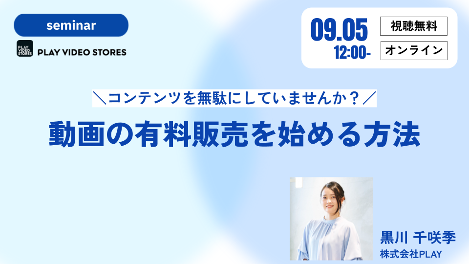 この度株式会社PLAYは9月5日(火)12:00〜開催するセミナー「コンテンツを無駄にしていませんか?動画の有料販売を始める方法」の申し込みページを公開しました。