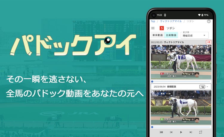 「パドックアイ」は、各競走馬の現在と過去のパドック動画を比較することができます!
