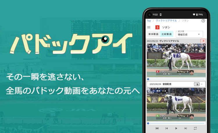 「パドックアイ」は、各競走馬の現在と過去のパドック動画を比較することができます!