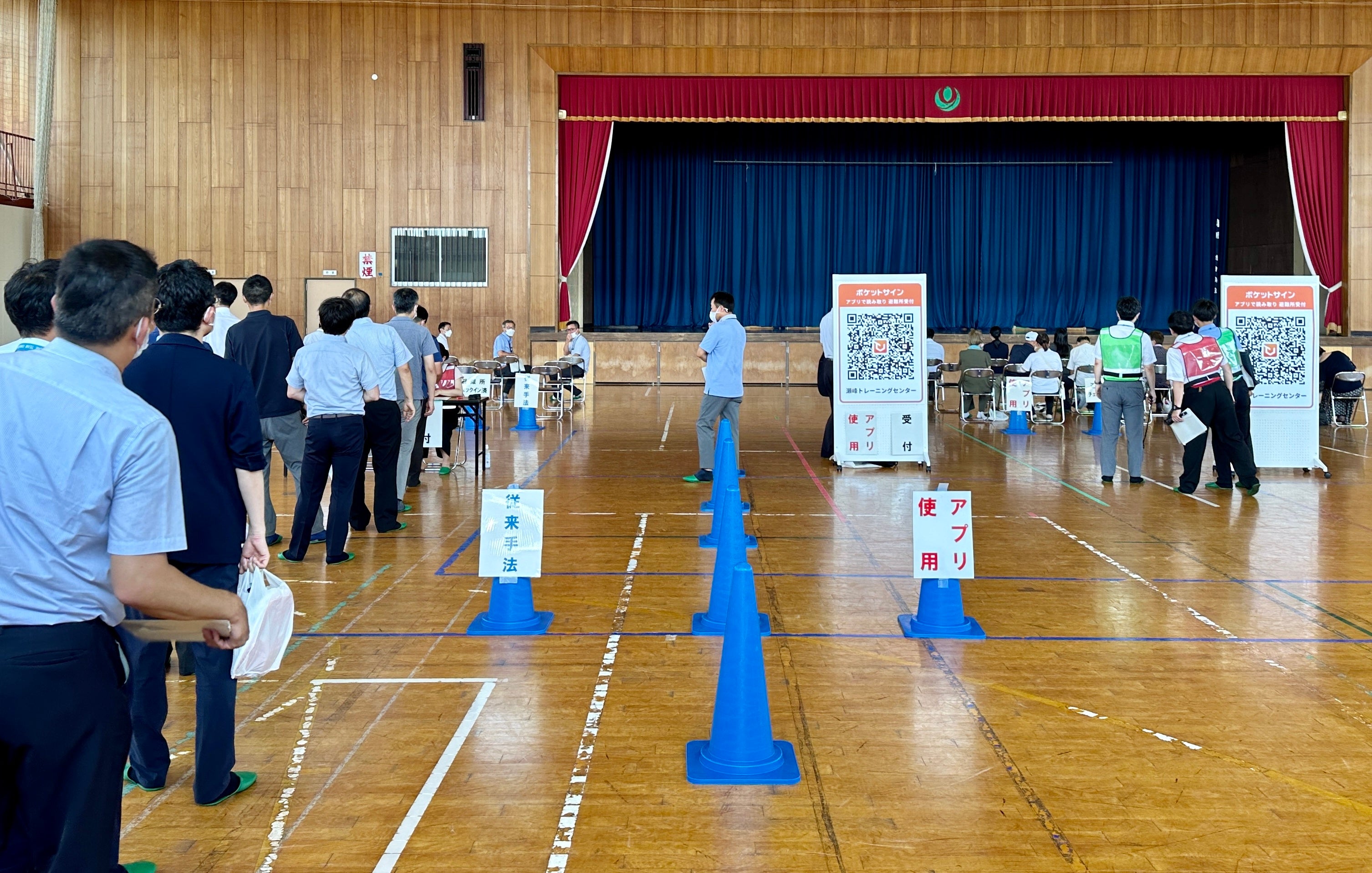 原子力災害を含む災害発生時には、速やかに避難を行いつつ、自治体側が正確に避難者の情報を把握する必要があります。しかし、従来の紙ベースの避難退域時検査等場所(以下検査場)・避難所チェックイン方法では、① 氏名・住所などの情報の記載に時間がかかる、② 大切な書類を紛失してしまう恐れがある、③ チェックインした住民を自治体がタイムリーかつ正確に把握できない、などの限界がありました。そこで、本実証実験では、「ポケットサイン防災」を用いることで、迅速かつ正確な検査場・避難所受付を実現できるのか検証しました。