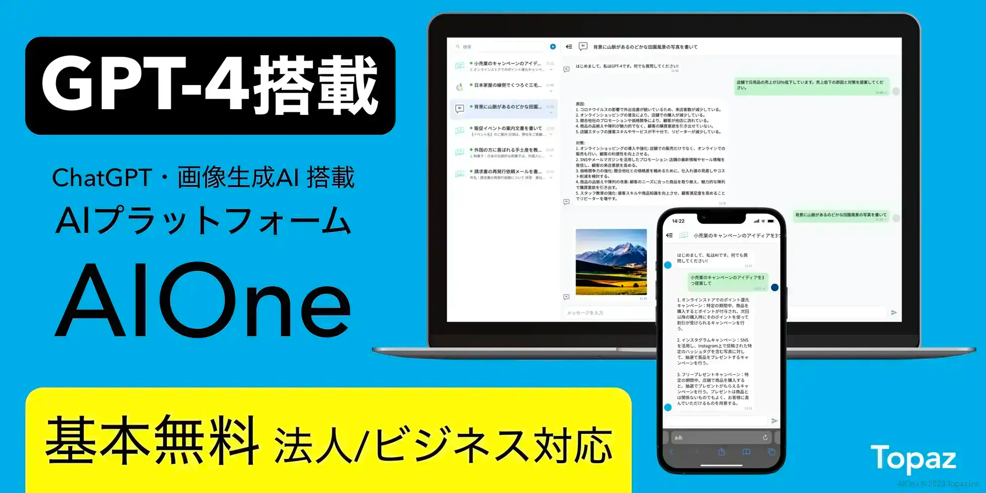 日本国内ChatGPT・日本語8万文字対応「Topaz Pro AI」搭載「ビジネスAI」公式ウェブサイト