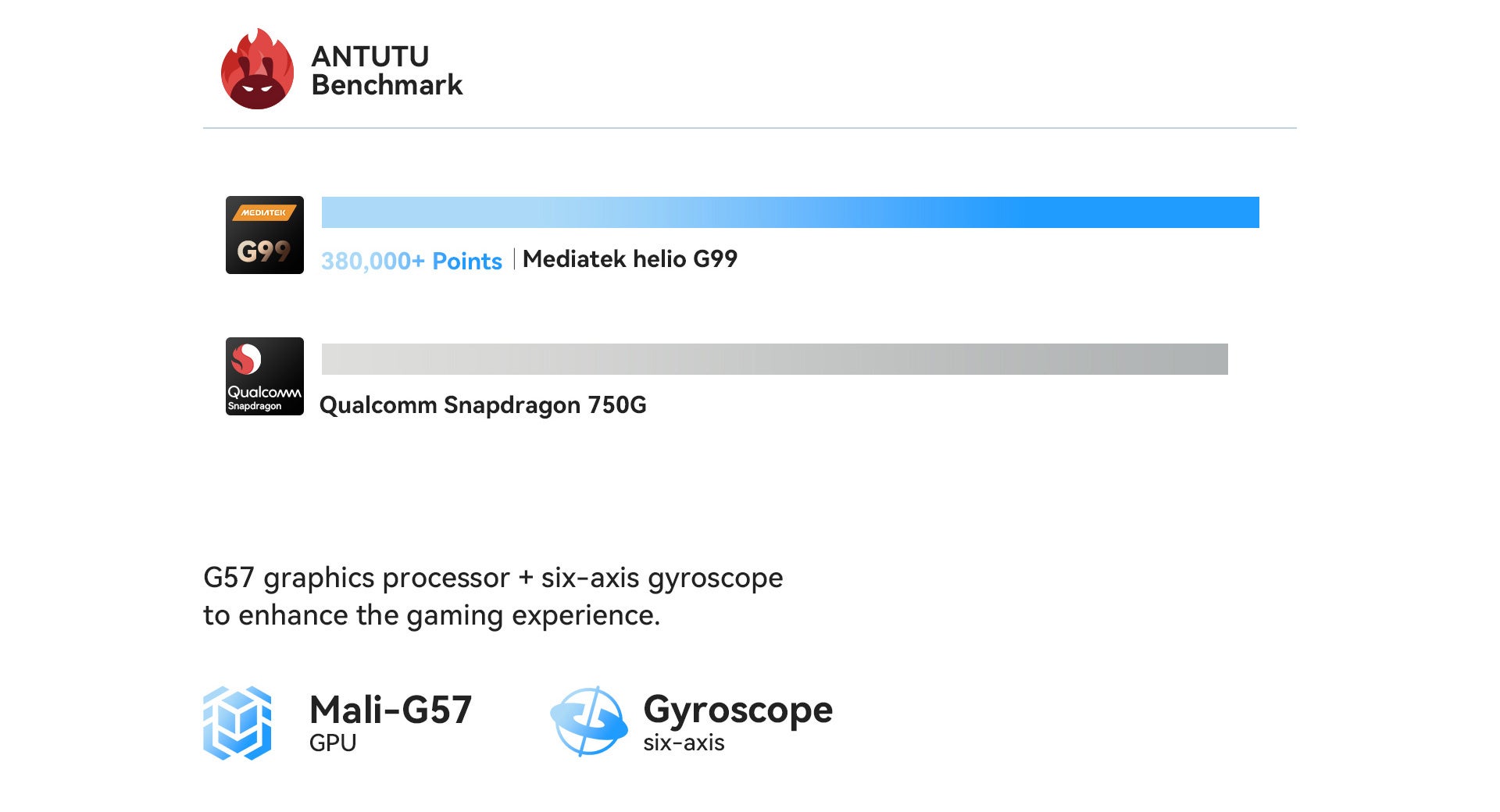 G57グラフィックプロセッサ+6軸ジャイロスコープにより、ゲーム体験が向上します。
