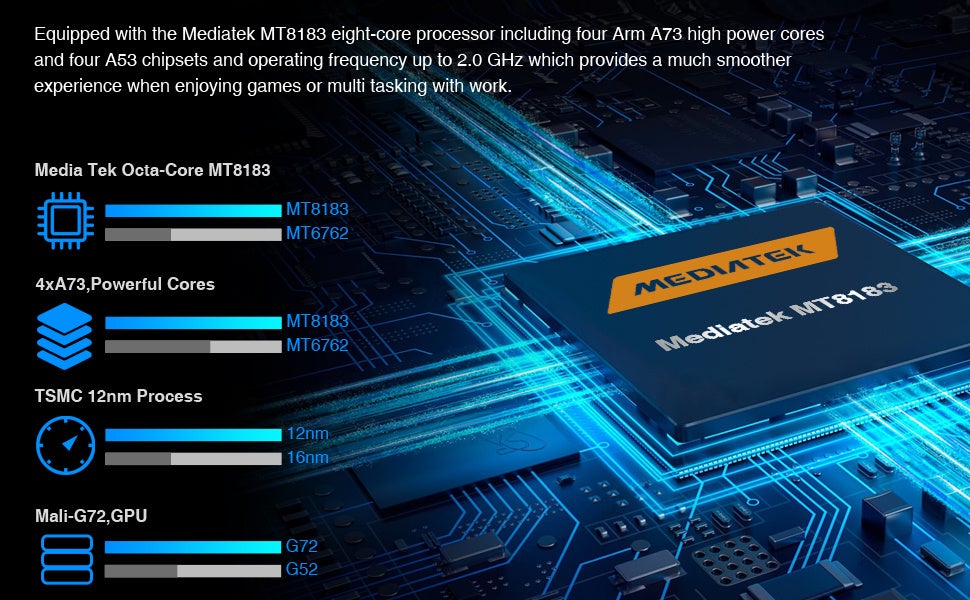 【高性能CPU+10インチ HD】NPad Airは、UNISOC T310を搭載しています。12nmプロセスで製造され、DynamIQアーキテクチャを採用し、パフォーマンスと消費電力を考慮したチップフレームワークを実現しています。 3つの高効率コアと複数のCPUコアが協力して動作し、学習、エンターテインメント、仕事の効率を向上させます。 10.1インチのHDディスプレイ(1280×800)は、繊細で滑らかな視覚効果を提供します。