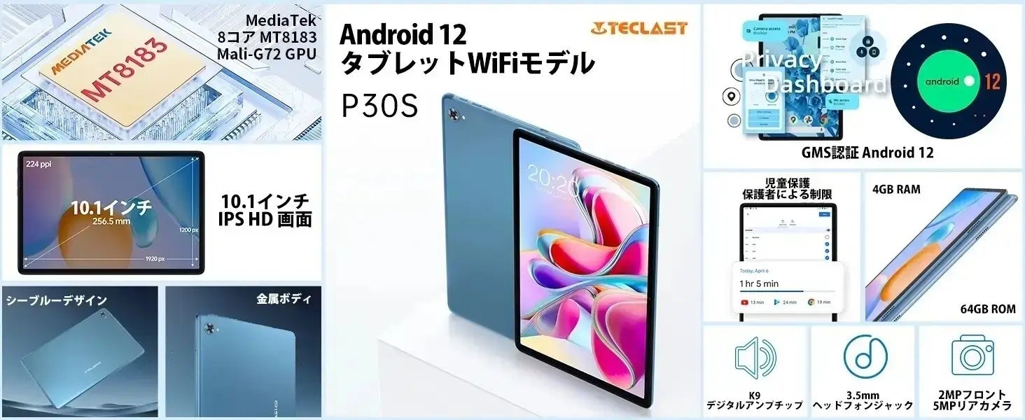 P30Sは、新世代のPureSound Audio スピーカーを採用し、独立したアンプチップに合わせて使用すると、臨場感あふれるオーディオ体験ができます。3.5mmヘッドフォンジャックを備え、様々なユーザーの好みに対応できます。また、保護者が懸念するタブレットの使用時間や使用アプリの選択などの問題点に対応し、新たな児童守護機能を開発しました。学びと遊びをバランスよく楽しめるタブレットになります。