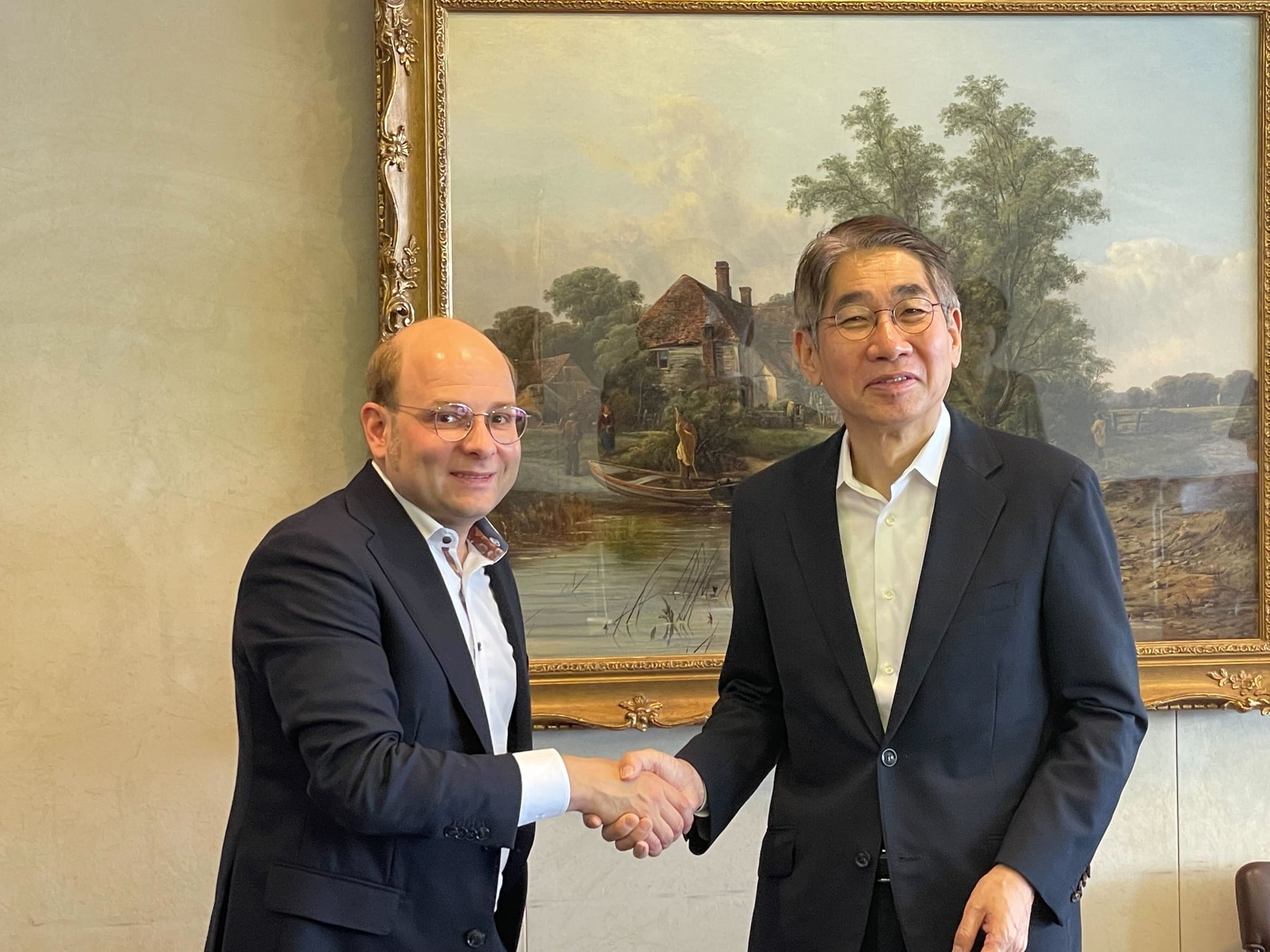 <Celonis 共同創業者兼共同CEO バスティアン・ノミナヘルとNEC CEO森田隆之>