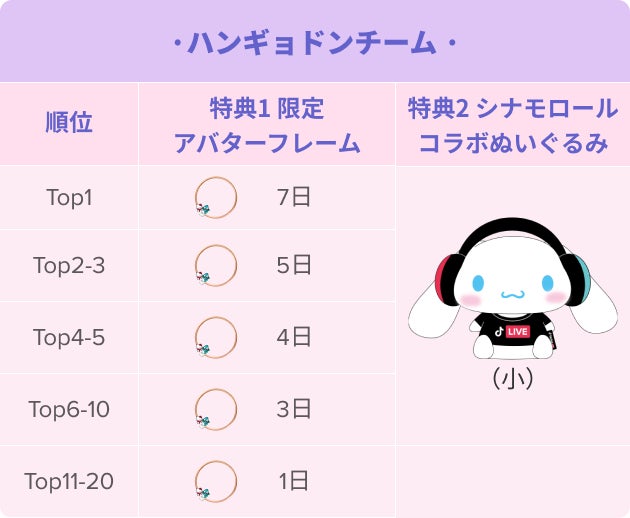 ●チーム分け:過去30日間に受け取ったダイヤモンド数に応じて、クリエイターは3つのグループ(シナモロールチーム/クロミチーム/ハンギョドンチーム)に分けられます。