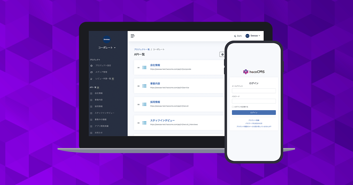 「hacoCMS」はコンテンツ管理に特化したAPIベースのヘッドレスCMSです。マルチプラットフォームでのデータの一元管理や効率的なメディア運用をサポートします。