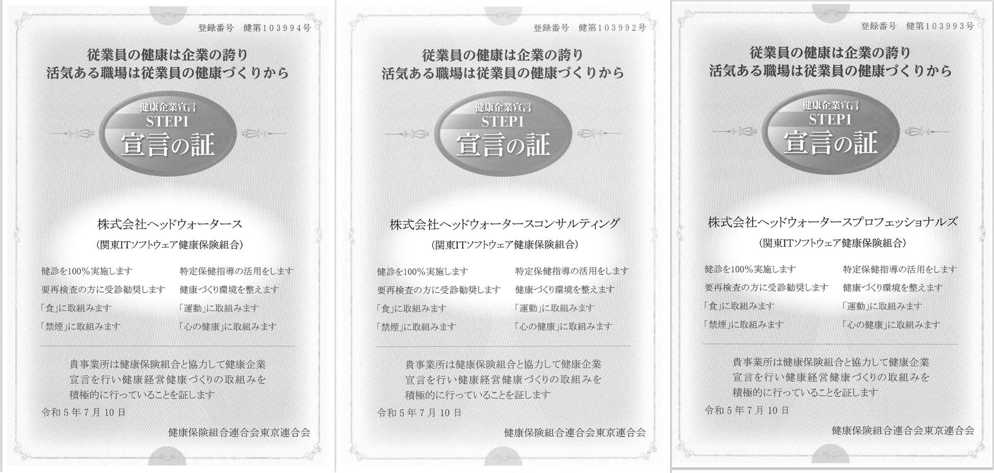 ヘッドウォータースグループは「健康経営」(※1)を掲げておりますが、社員も当事者意識を持って健康管理や働きやすい職場環境作り(※2)を推進しております。今回の健康企業宣言における改善施策についても、社員の一人一人が責任を持って取り組み、健康企業として「銀の認定」の取得を目指して参ります。