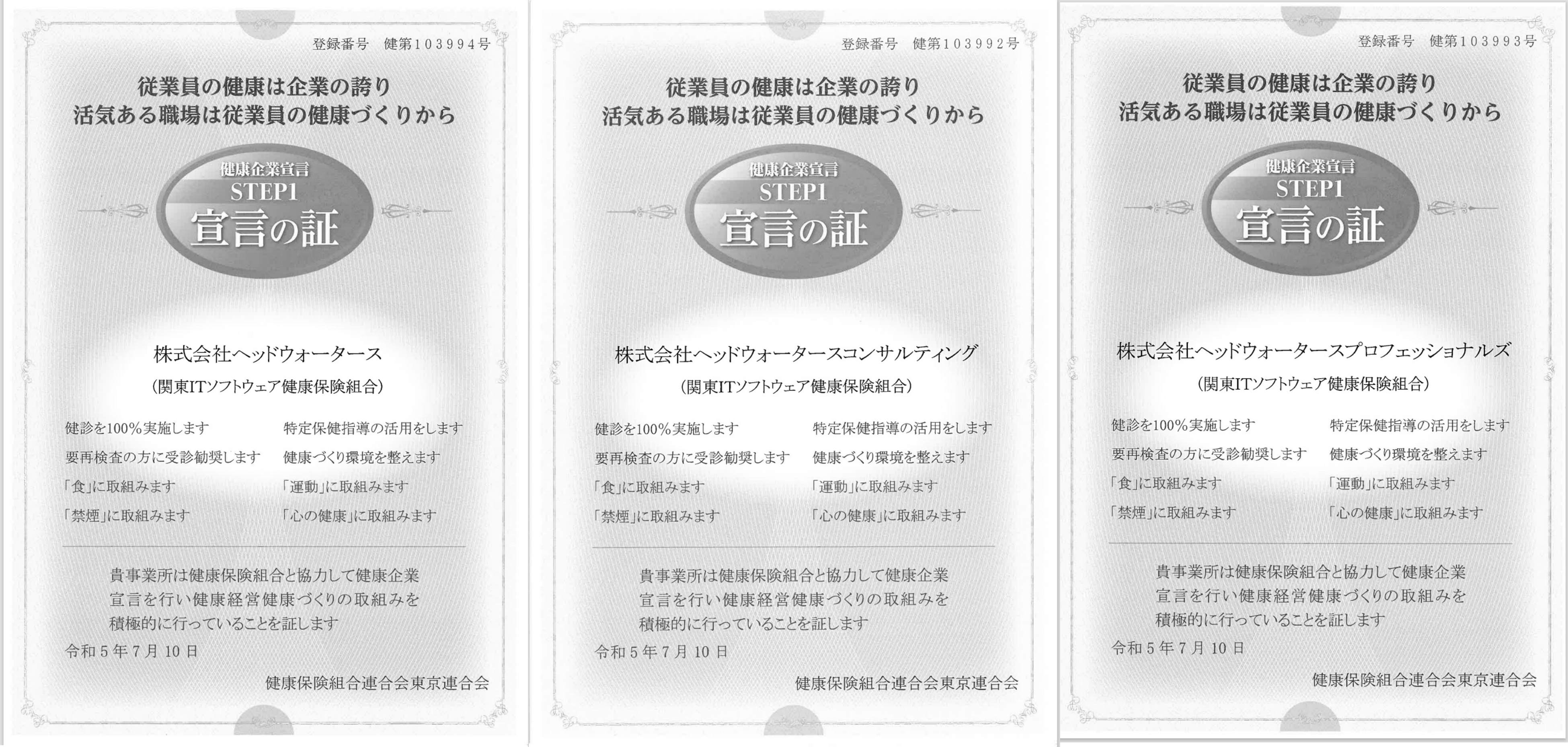 ヘッドウォータースグループは「健康経営」(※1)を掲げておりますが、社員も当事者意識を持って健康管理や働きやすい職場環境作り(※2)を推進しております。今回の健康企業宣言における改善施策についても、社員の一人一人が責任を持って取り組み、健康企業として「銀の認定」の取得を目指して参ります。