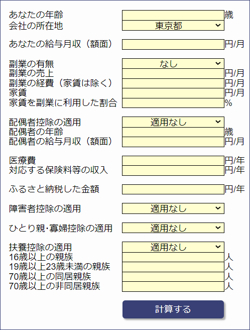 黄色い部分に必要な情報を入力し、「計算する」を押すだけです。