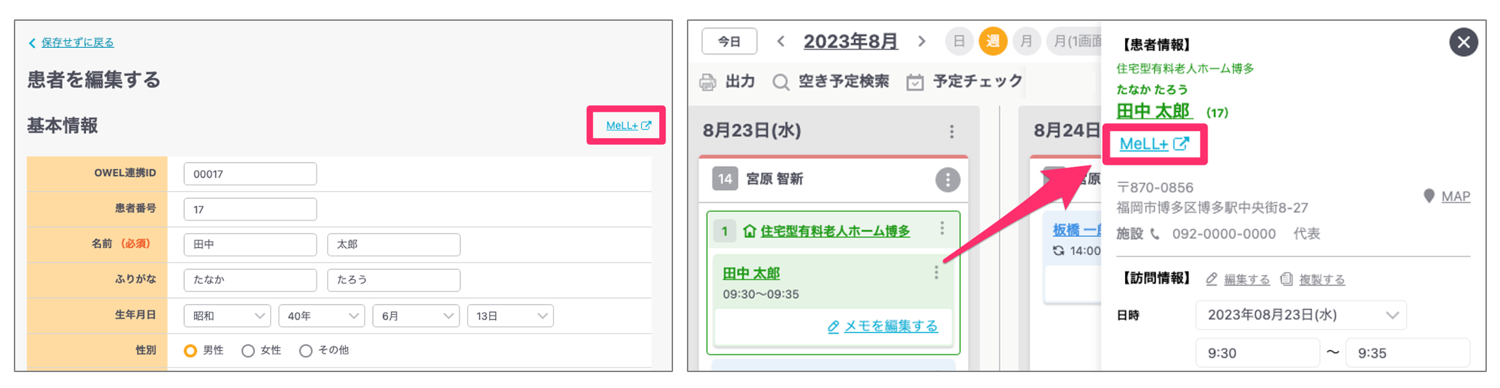 ・CrossLogの患者情報からMeLL+を開くことが可能