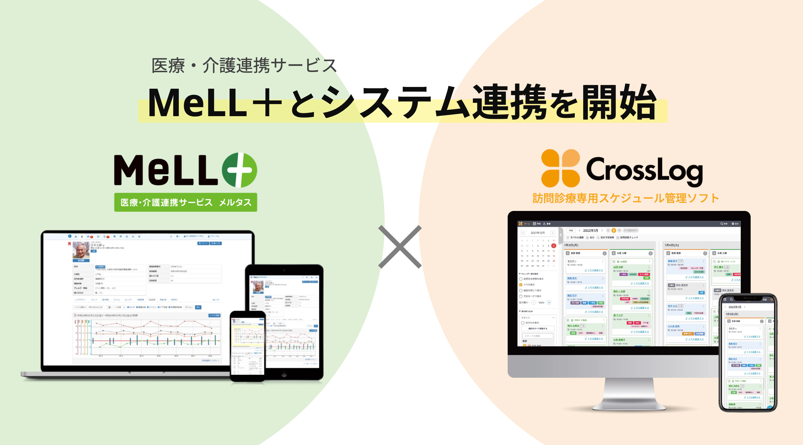 訪問診療の現場において、医療スタッフや介護スタッフなど多職種連携が重要視されています。医療・介護連携サービス「MeLL+(メルタス) 」とシステム連携をすることで、訪問診療におけるスケジュール・ルート管理だけでなく、多職種の情報共有も含めた業務効率化を実現します。