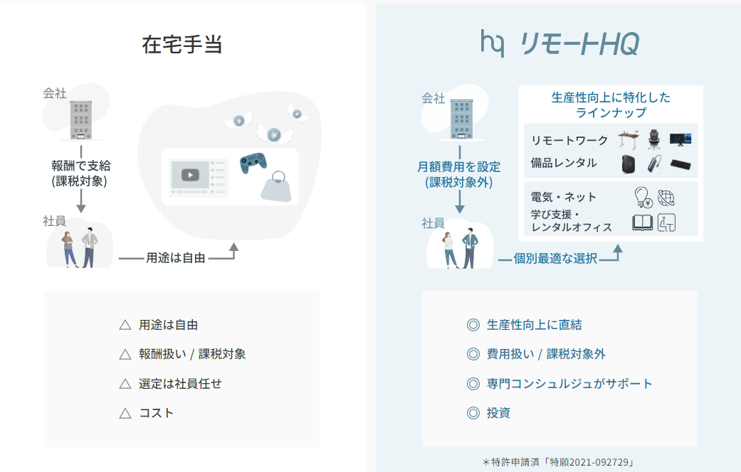 「リモートHQ」は、リモートワークを導入する企業が、社員一人ひとりにとって最適なリモートワーク環境を整備できる、これまでにないサービスです。